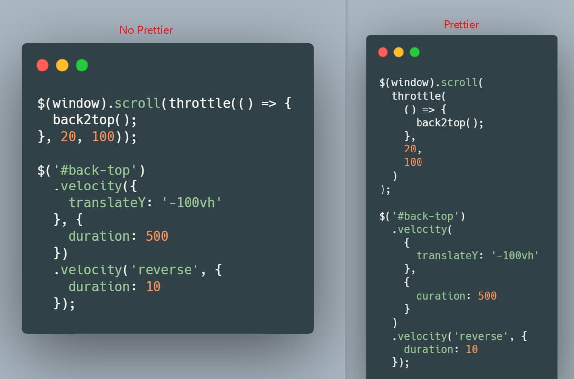 这种价值在个人项目中并不明显,很多人还会因为 Prettier 的规则与个人习惯不同而选择不使用 Prettier。但是这在团队项目中就显得比较重要了,每个人的习惯和喜好并不同,一套强制性的工具是最简单直接的解决方案。